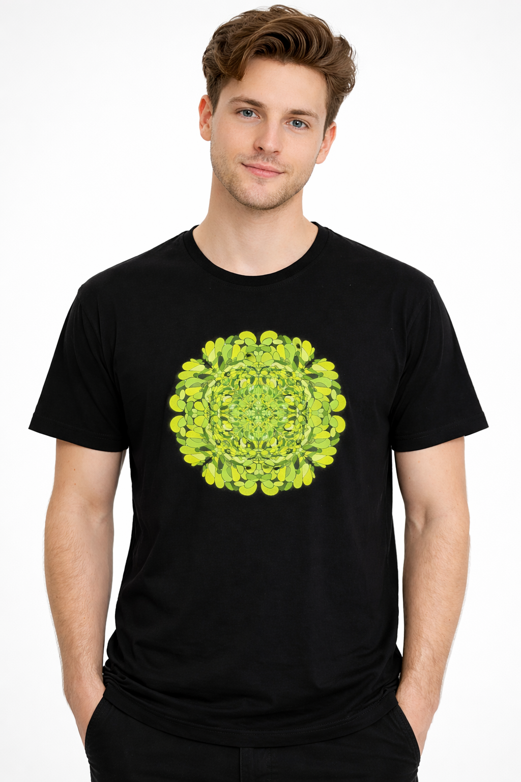 Option 1: 100% Baumwolljersey, 150 g/m2, hochwertiger Vollfarbdruck DTF oder Siebdruck;
