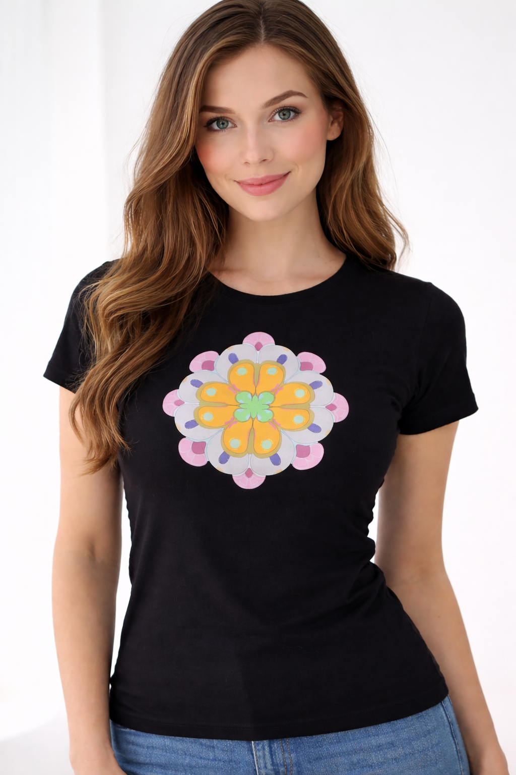 Option 1: 100% Baumwolljersey, 150 g/m2, hochwertiger Vollfarbdruck DTF oder Siebdruck;